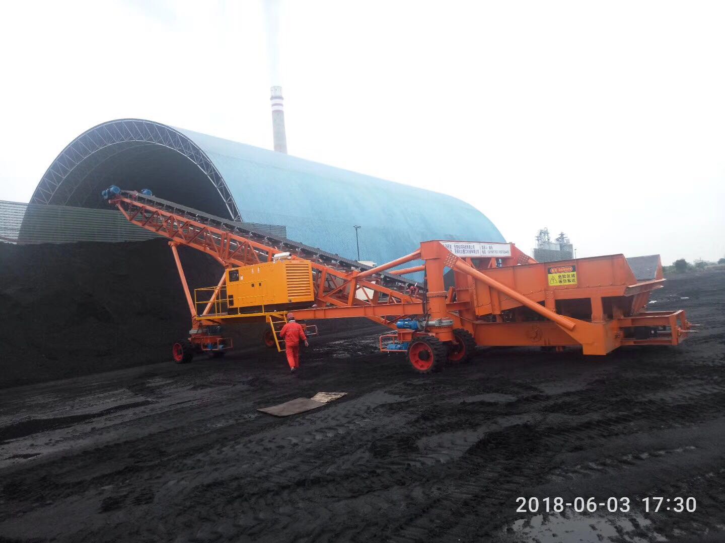Mobile bulk material stacker was developed by songbang and built and installed by songda, solving the problem of high difficulty of traditional bulk materials stacker.In addition, the product has passed two invention patents and two new patents, which solve the problems of small and medium-sized wharves.This product is simple and flexible in operation and can be operated by remote control. It can rotate in place, go straight, go backwards and walk horizontally.One equipment replaces many excavator piles, saving more than 60% of efficiency.