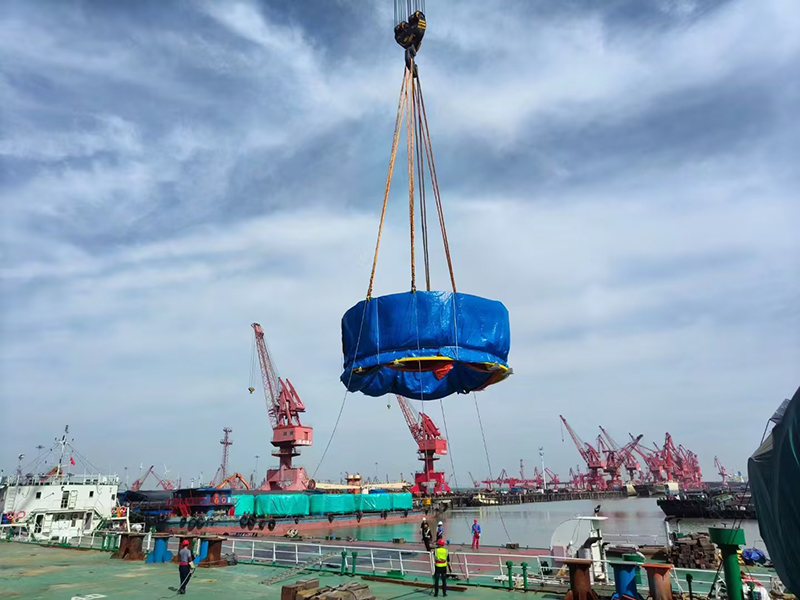 CMEC承接荷蘭TMS公司設計松大生產的風電發電樁柱海上運輸工具樁塞今天順利裝船發運,前往荷蘭?????????? |